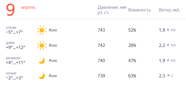 Температура воздуха днём составит 12 градусов тепла. а в ночные часы опустится до минус двух. Световой день продлится 13 с половиной часов.