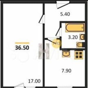 - Общая площадь: 36.5 м²