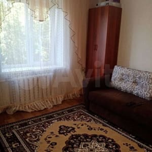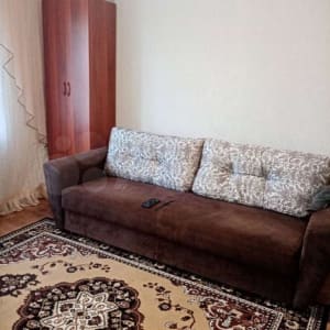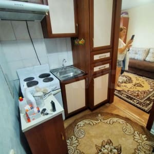 Двухкомнатная малосемейная квартира общая площадь 24 кв.м.( одна комната 12 кв.м., другая 6кв.м) , 1 диван, кухонный гарнитур , холодильник, стиральная машина, шкаф, стол обеденный+2 табурета.