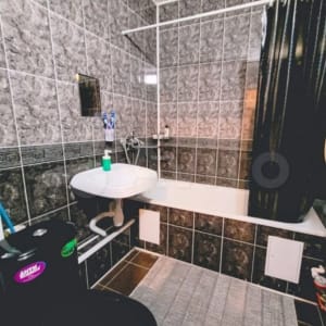 В ванной фен, новые зубные щётки, банные принадлежности.